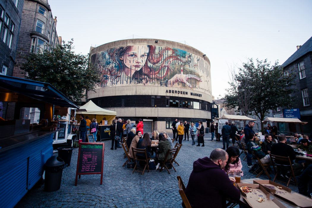 While following the street art trail, I came across the Aberdeen Inspired Night Market, a food market held at The Green throughout the summer and stopped for some street food for dinner.