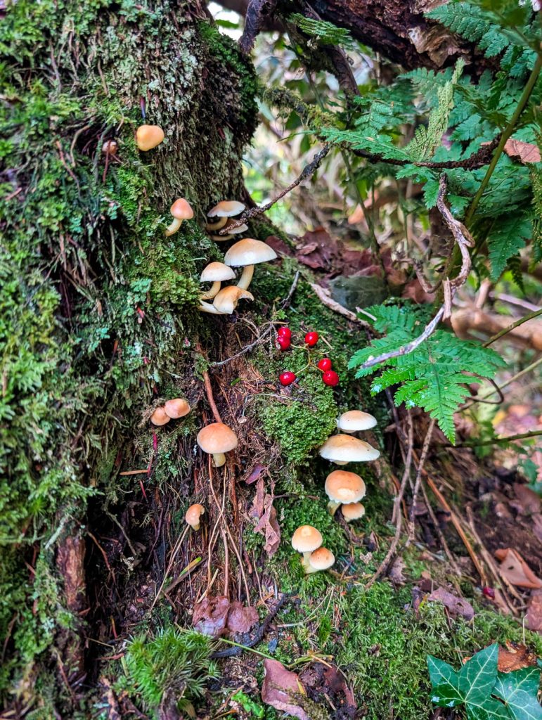 The wee estate road took us past the restored 15th-century tower of Kinlochaline Castle and towards Ardtornish House. Beneath an old stone bridge, we watched the tumbling waters of the River Aline, and over on the other side, we spotted puffball mushrooms beneath the remains of a once-towering tree.
