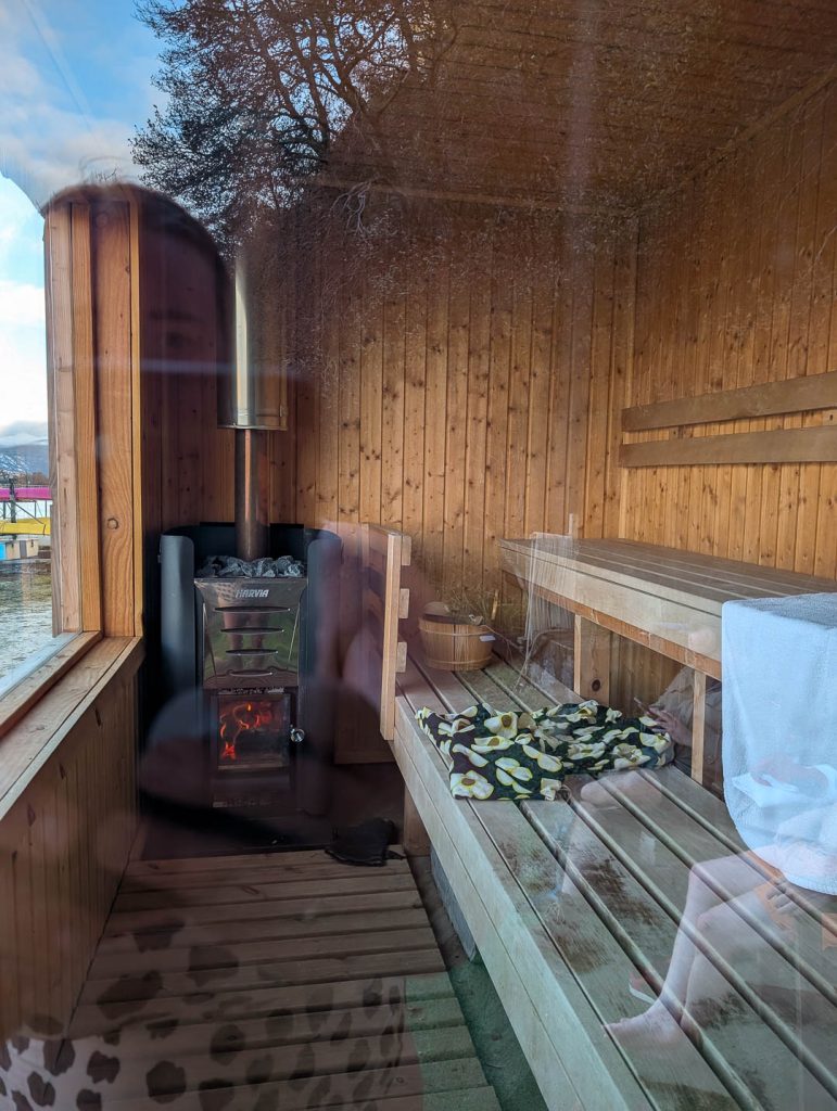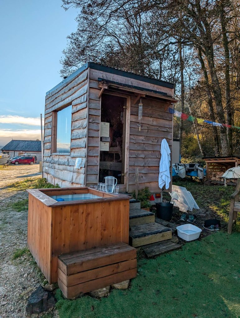 You can either book an hour-long private session at Lochaline Harbour Sauna for up to 8 people, or book a seat for their regular community sessions (up to 6 seats).