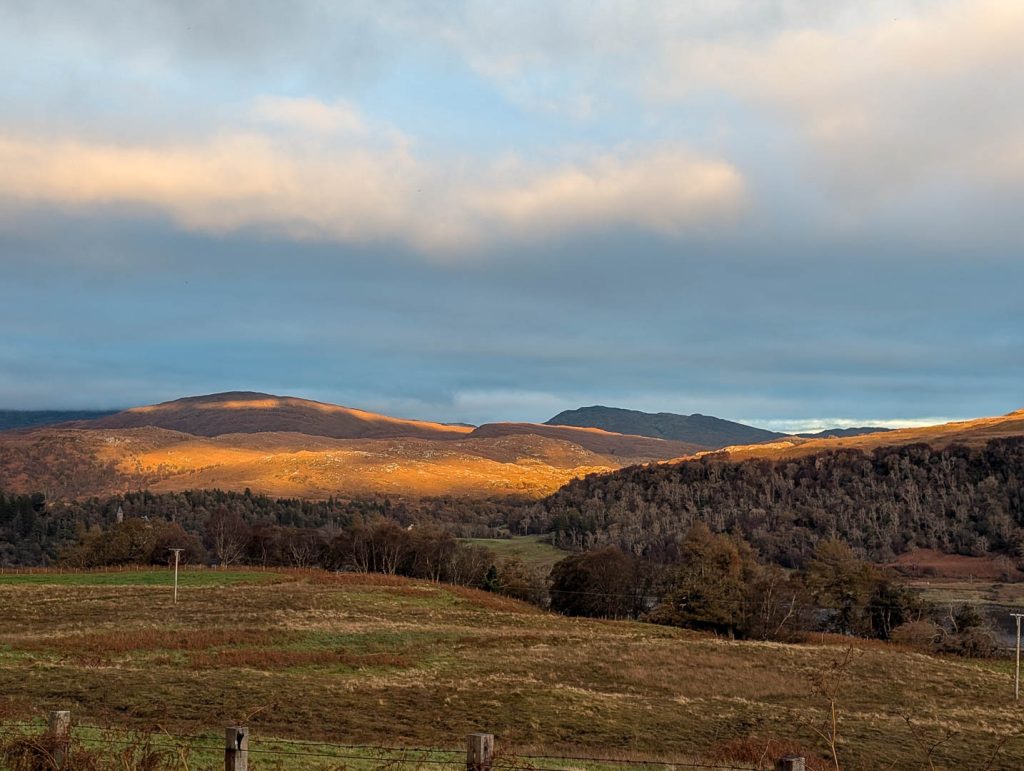 We drove home as the sun began to set. The autumnal hills were dipped in golden light, and over in the distance, the top of Ben More – Mull’s tallest peak and only Munro – towered in the sky.