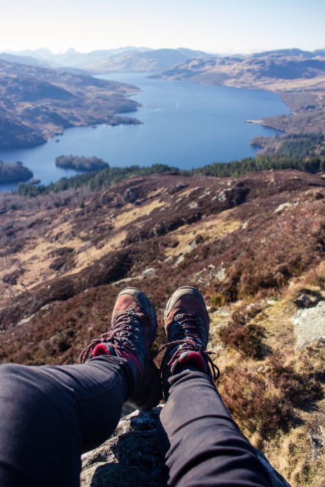 Just before you climb up the final steps to the summit, take a little detour to the right – there is a little path and you almost can’t miss it. If you do, you might go home without having seen the second-best view from Ben A’an – only beaten by the summit. You can see Loch Katrine below, framed by the peaks of the Highlands. Across to the left, you can see the majestic peak of Ben Venue.
