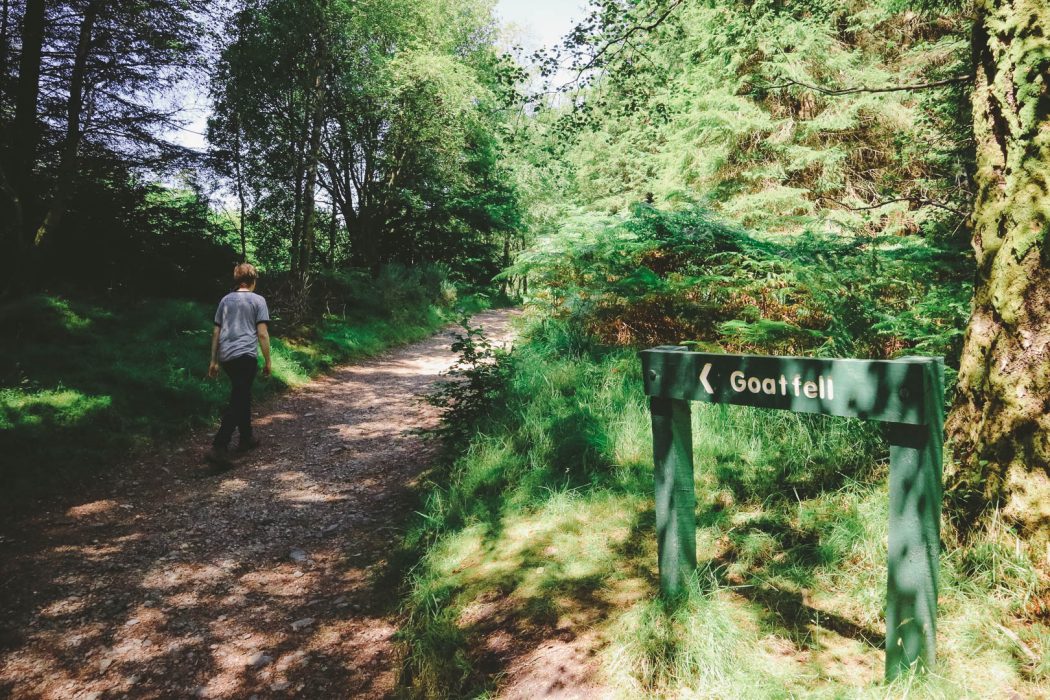 The first part of the trail leads through a forest with tall trees, continuously leading upwards. As the trees decrease in size, and the bush becomes thicker, the trail runs closer alongside little trickles of water – and this can only mean one thing: midges and other biting beasts. I had forgotten my Smidge insect repellant at home – what a rookie mistake – and regretted that as the third little beastie bit me through my leggins. I would scratch my legs all week…