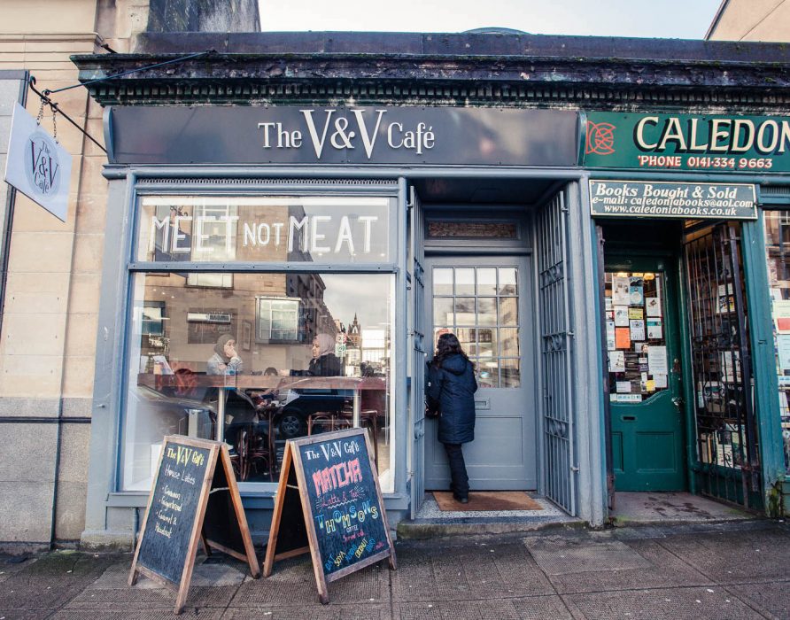 - The V&V Cafe: a fully vegan cafe near Kelvinbridge subway station with a selected lunch menu of toasties, curry, soup and sandwiches 481 Great Western Rd, Glasgow G12 8HL, website