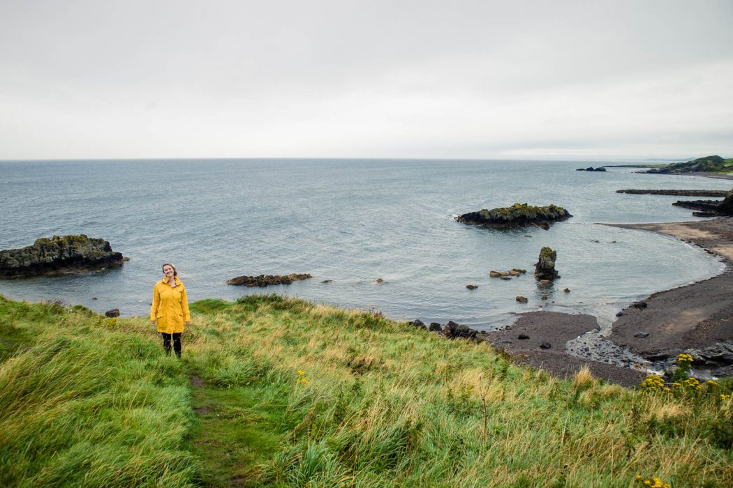 On our way up the coast, Dave decided to do a quick stop at Dunure Castle, just to show us how different it looked compared to Culzean, even though they were built around the same time. The rain was taking a wee break, but Arran, which was supposedly just across the water, was still hiding in the fog.