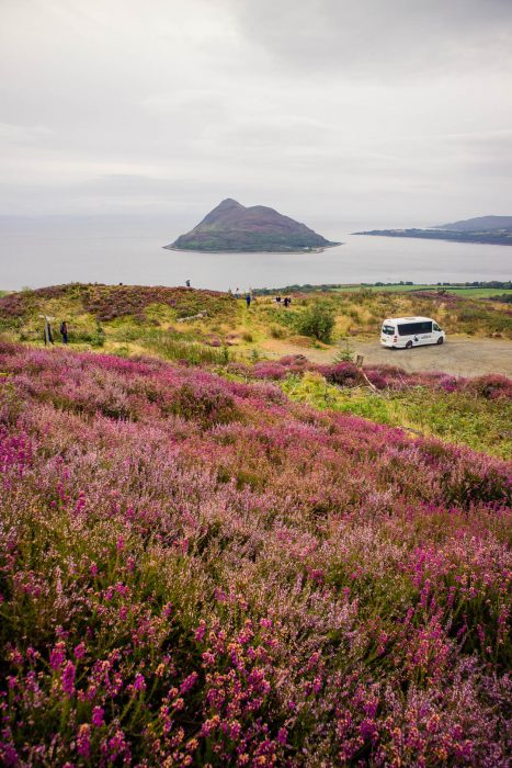 Our first stop of the day was a beautiful view point over Lamlash Bay and the Holy Island at the end of a winding logging road. This is a great example of the benefits of Rabbie’s 16-seater policy – would they go with bigger buses, Dave could have never driven up here! Coming at the end of August meant the beautiful Highland heather was in full bloom, and I couldn’t keep my camera still!
