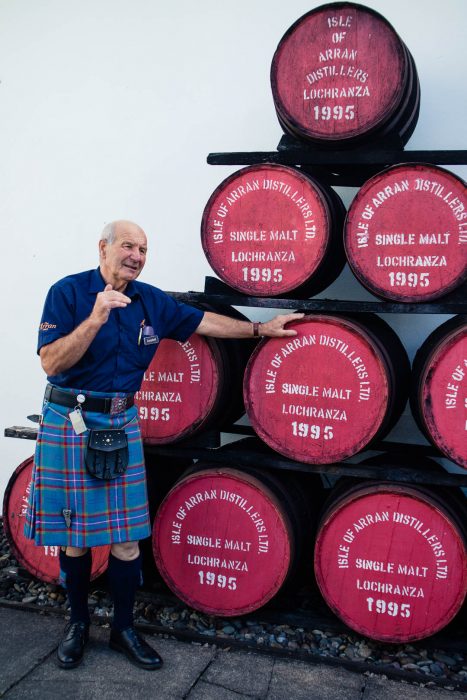 While the morning was spent exploring the south of Arran, the afternoon brought us north. We drove along the beautiful east coast of Arran, spotted a man-made tidal ‘bath tub’ in the rocks left of the road and finally reached our destination for the afternoon: Lochranza. Here we had the option to go for a walk with Dave, or visit the Arran Distillery – which one do you think we chose?