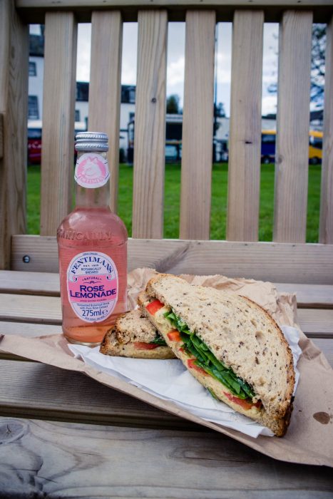 For lunch we stopped in Inveraray, but forewent visiting Inveraray Castle in favour of picking up some takeaway lunch and enjoy a sunny picnic by the waterfront! Brambles has a vegan sandwich option, but you could also sit in if it was raining.