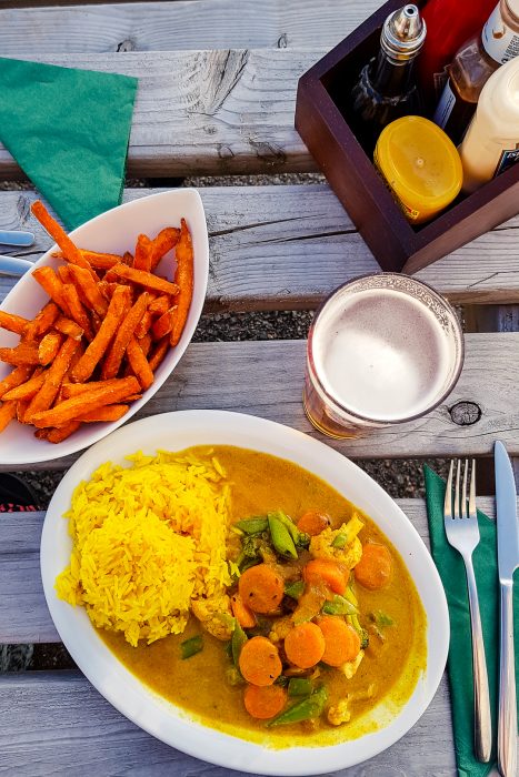 Delnashaugh Hotel | Ballindalloch would be the only place where we stayed along the Speyside Way, where we didn’t have any other choice than eat where we slept – the Delnashaugh Hotel. Just like the hotel, the restaurant menu is traditionally Scottish – lots of locally sourced meat, seafood and vegetables, but not so much on the vegan side of things. However, the owners of the hotel are super accommodating and made me a traditional Scottish curry with soy cream and we shared a side of sweet potato fries. If you’ve never had a British curry, this is a good place to try it, because it’s homemade with fresh vegetables – very delicious!