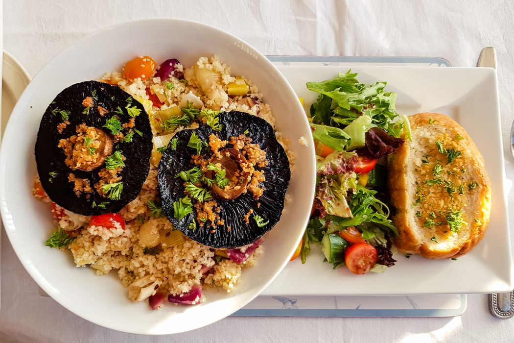 Rosemount Hotel | I already knew that dinner options would be limited in Buckie – vegan or not – so we booked a dinner at our accommodation, the Rosemount Hotel. Ellen, who runs the place, cooked up a mini-storm for us, using only fresh and local ingredients. For my friends, she made seafood pasta, and for me a veggie couscous with large garlic mushrooms, garlic bread, and a side salad. I’m normally not a huge fan of couscous, but I have to say, with the amount of veg in it, it tasted really amazing! The one thing I’d say, is that it was a bit pricey, (£13 for the vegan option, £18 for the seafood pasta) but considering that we didn’t have much choice, and it was a properly homemade and healthy meal, it was OK to treat ourselves.