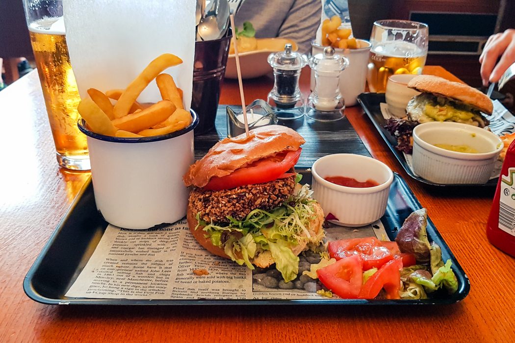 Boat Country Inn | There are just a few restaurants in Boat of Garten, but I knew from a bit of online research that the Boat Country Inn & Restaurant would be the best for vegan options. Our waitress was very accommodating, double checking ingredients with the chef for me, and making sure I got some healthy replacements. I went for a beetroot, red pepper and quinoa burger on a dairy and gluten-free bun with chips on the side and some extra salad. I liked that they went beyond the regular falafel burger you often get and put some thought and effort into burger recipes!