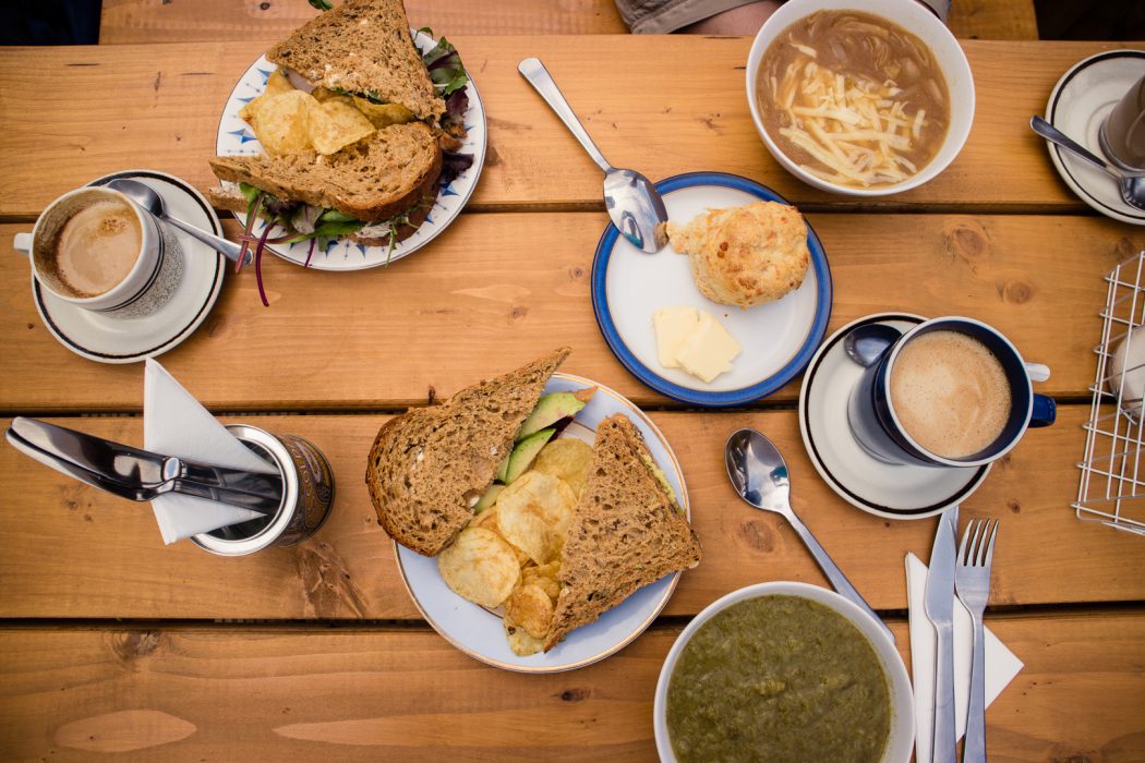 Nethy House | On day two of our trek en route from Boat of Garten to Grantown on Spey we came through a small village called Nethy Bridge. I was already half-way in the local Spar shop to buy a few supplies for a picnic when we realised that there is a small cosy cafe across the bridge, directly on the Speyside Way. Nethy House Cafe & Rooms is a beautiful little place with a cafe, a sun deck and a few rooms to stay in. On the menu are light lunch options, breakfast rolls, and homebaked cakes. I had a vegan potato and leek soup with an avocado, beetroot and hummus sandwich. The coffee was also excellent and they have various plant milks!