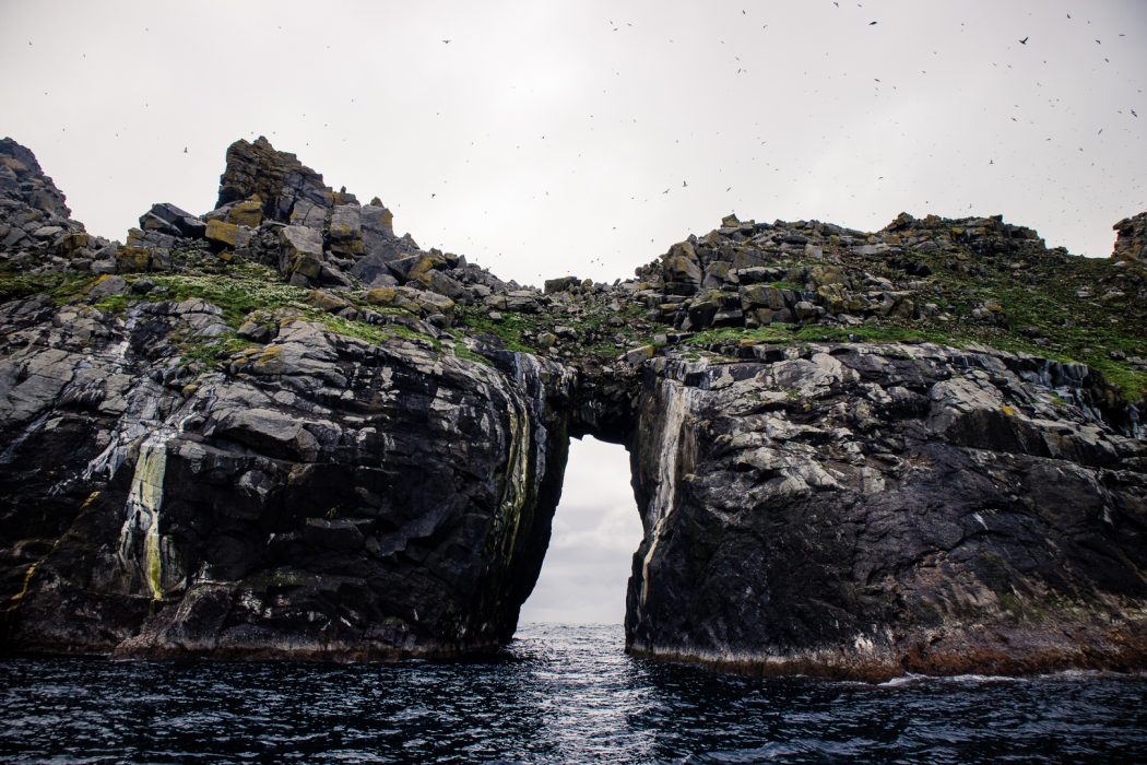 Throughout the cruise, one of our skippers is out on the deck with us, telling us more about the birds and pointing out the little stone bothies were locals would have stayed every year during hunting season. They would spend several weeks each year on one of these rocks, hunting for gugas (gannet chicks) in the harshest conditions.