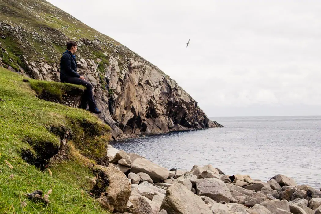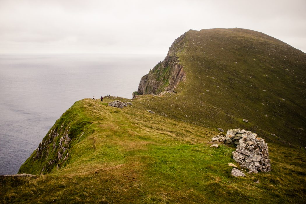 From the Gap, the next obvious natural site to visit, is the highest peak of the island, Conachair. It is about a 45-minute climb up the steep hillside. Unfortunately, the clouds were rolling in and covered the entire hill in a white blanket and the wind was picking up.