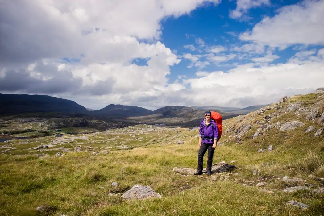 Carrying my big backpack through the mountains of Harris along the Hebridean Way.