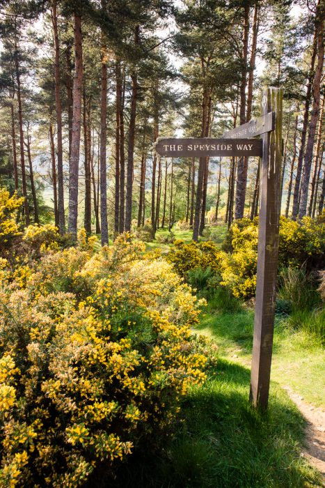 The Speyside Way is fairly well marked, although at times there could be more waymarkers in place. Keep an eye out for wooden posts with an engraved white or yellow thistle symbol. Sometimes signs also say ‘Speyside Way’.