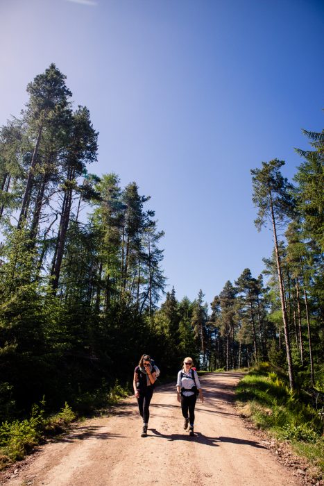 At first, we were back on the disused railway line, but luckily only for a little while. The Speyside Way soon joined a little tarmac road leading up towards Ben Aigan forest. As soon as you enter the forest, you begin the nicest section today’s trail, along a wide forest road surrounded by large pine trees giving way to gorgeous views every now and then. The trail climbs up and down, almost on the same level as the day before – so don’t expect it to be easy.
