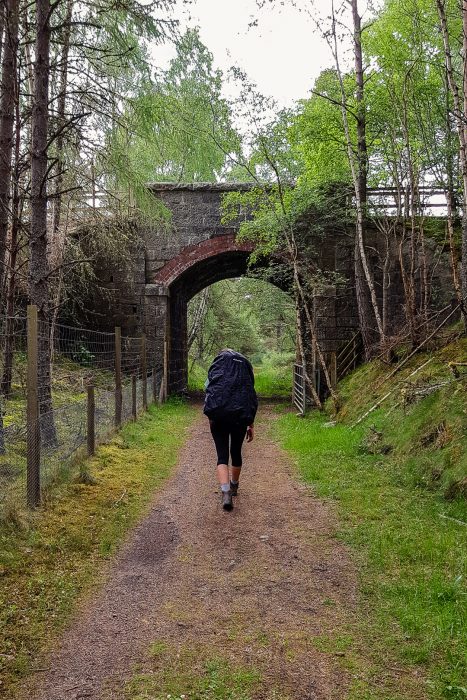 We continued across idyllic farmland until we finally met the river Spey again, and walked the last few miles of the day on a disused railway line next to the river. Once we reached Ballindalloch station near Cragganmore, we left the official Speyside Way trail and followed signs for the Tomintoul Spur.
