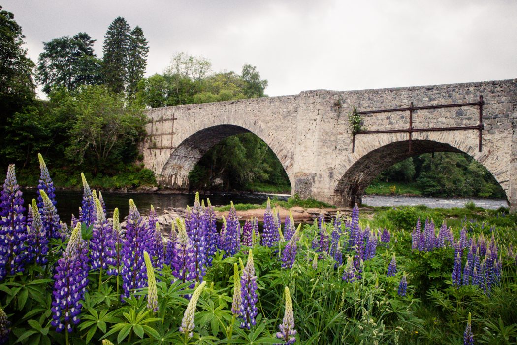 After descending towards the river Spey through the forest, you reach Boat o’ Brig – not a village worth mentioning, but a good place to mark the half-way point of today’s walk.