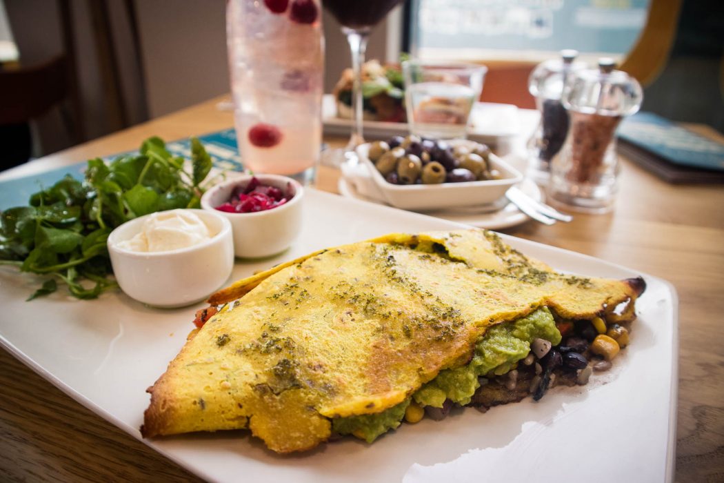 Loudons New Waverley is a stone’s throw from the Royal Mile and thus a perfect place for a hearty breakfast before you start exploring, or pit stop for a rest from all the sightseeing you’ve already done. The cafe is not fully vegan, but has several delicious vegan options on the breakfast and lunch menus, including pancakes, quesadilla, a walnut burger and a vegan Benny – their speciality. A Benny is an English muffin with different toppings – the vegan option comes with tomato dill haricot bean houmous, garlic roasted cauliflower and spinach and is topped with romesco sauce, pickled mixed vegetables and toasted flaked almonds.