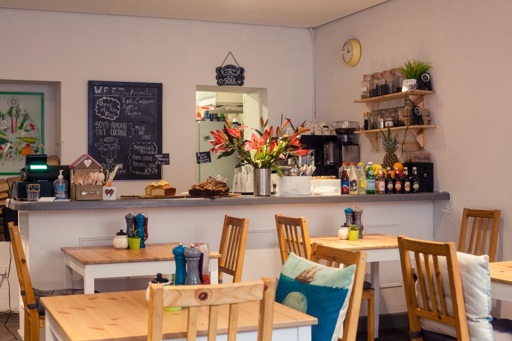 One the menu you will find what you would expect in a small cafe – a variety of plant-milks for your hot drinks, breakfast rolls, cooked breakfast, sweet treats like pancakes and French toast, granola and porridge bowls for breakfast; paninis, wraps, sandwiches and soups for lunch; and loads of vegan cakes and bakes.