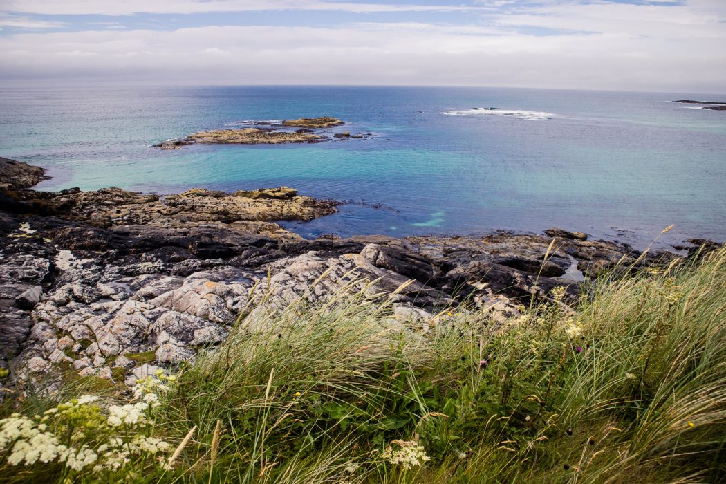 The rest of this section of the trail follows the route of the Machair Way along the coastline. Walking is easy unless you get yourself too involved in the sandy dunes, and the views of the sea to the left and empty farmland to the right are beautiful. Pay close attention to the blooming wildflowers around you – these “machair” plains are typical for this part of Scotland and can rarely be found anywhere else in the world.
