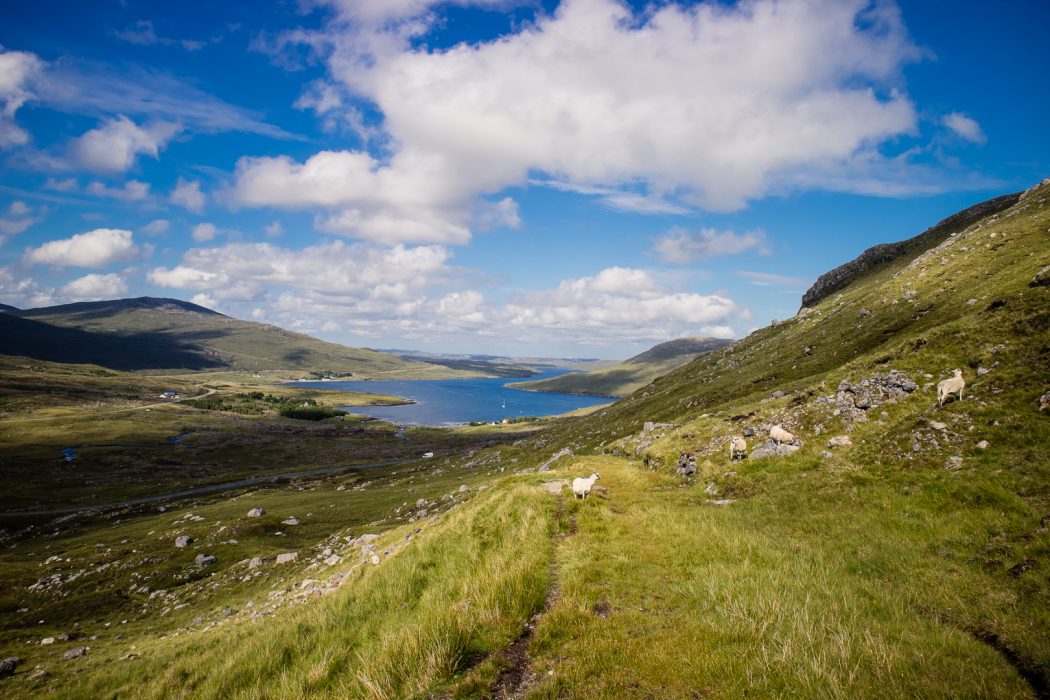 Leaving Tarbert the trail first crossed the picturesque Glen Lacasdail – the views were fantastic. I soon joined the road near Maraig and stopped for lunch with a view at a car park along the road. The path then turned away from the road again, and while it was a little boggy at times, I enjoyed this section leading through a valley between the tall hills of North Harris. I descended towards Loch Seaforth and was left with a few miles of road walking before I reached my home for the night, Vigadale House.