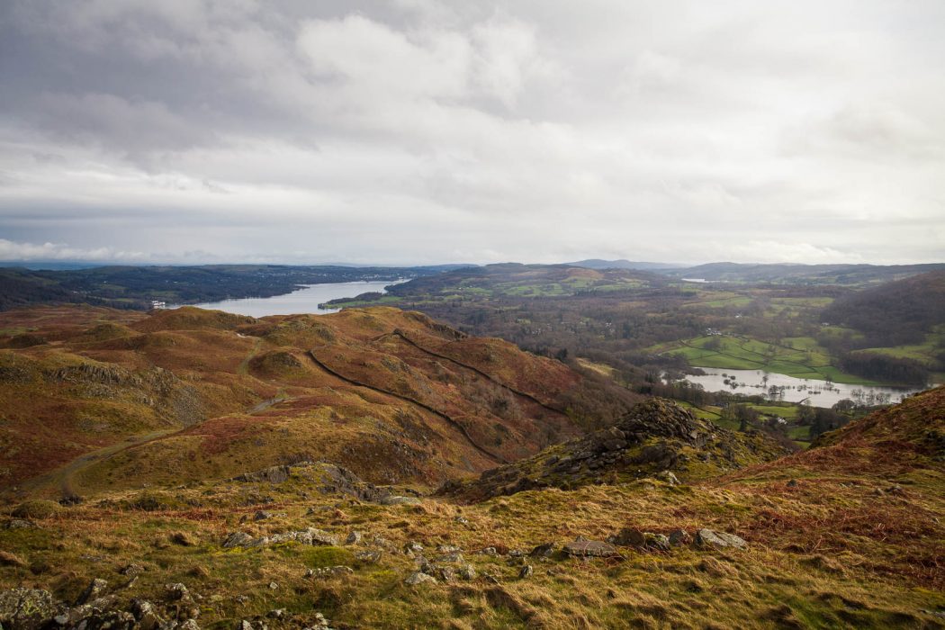 We were lucky enough in the afternoon, and the rain finally stopped falling. Not daring to go for an extensive hike, we decided to do a short route which still promised to reward us with great views. Ascending Loughrigg Fell from the White Moss carpark turned out to be the perfect adventure. The car park lies right outside Grasmere on the way towards Ambleside.